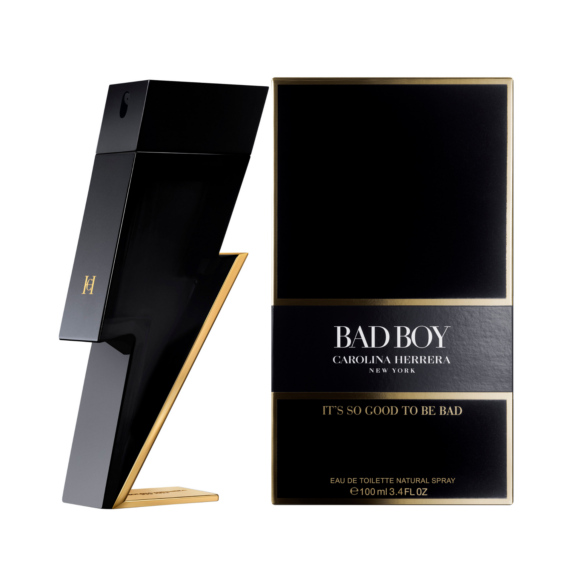 Bad Boy, the new masculine fragrance by Carolina Herrera, is a powerful and sophisticated scent for unique and irreverent men who dare to embrace all of the facets of contemporary manhood. The obscurity of Tonka Bean, Cacao and Ambar Wood contrasts with the luminosity of Sage, Black and White Pepper and Bergamot. The seductive aroma of Bad Boy is collected in an extremely distinctive flacon. Shaped as a lightning – symbol of heroism and strength in several cultures, this unique piece becomes a true object of desire.