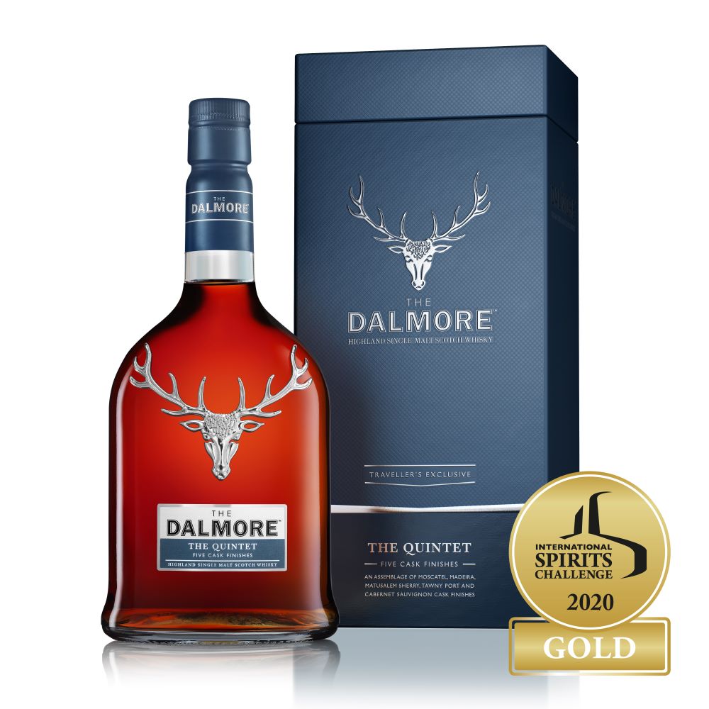 Combining five type of casks complementing The Dalmore Quintet is a bold and majestic Highland Single Malt. Initially matured in American white oak ex-bourbon casks for a first base of soft vanilla and honey notes. The whisky is apportioned between Moscatel casks, Malmsey Madeira barrels, Matusalem sherry casks, aged Port pipes and Cabernet Sauvignon wine barriques. The five parts are then brought together to harmonize with each cask gifting the whisky with its own characteristics and flavours.