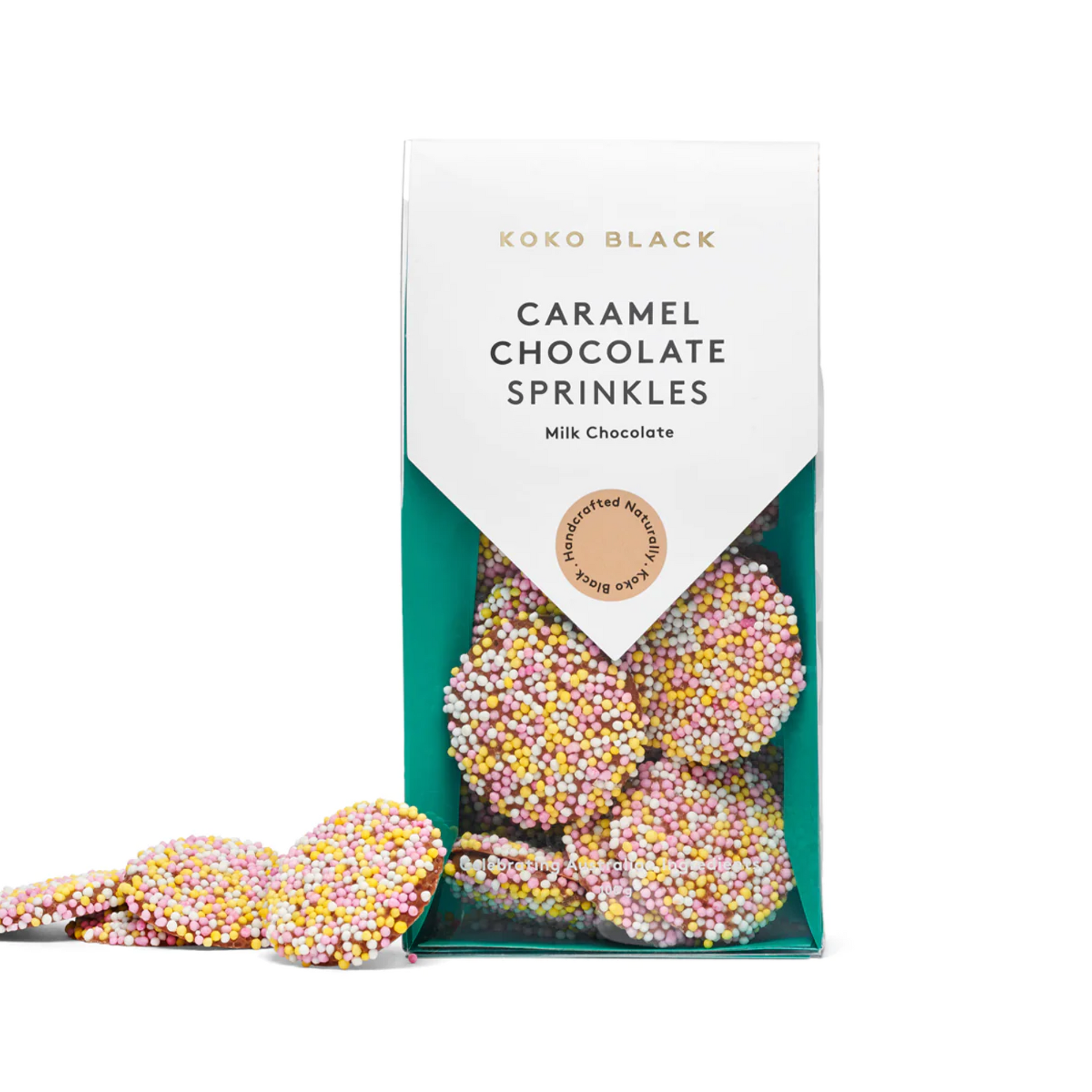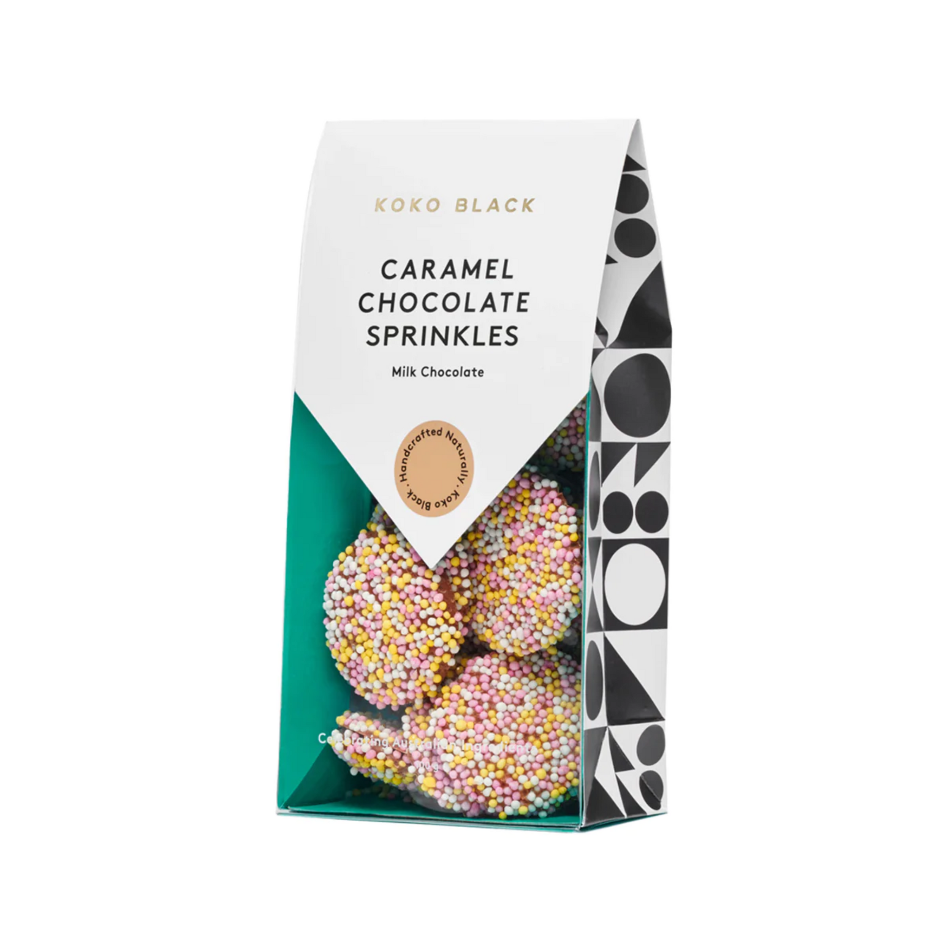 Buttery, jersey caramel milk chocolate topped with sprinkles.